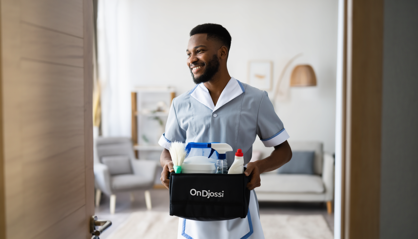 Les prestataires peuvent apporter leurs propres produits ménagers en option. Attention: Vous devez toujours prévoir les équipements et outils de nettoyage. C’est idéal si vous manquez de temps ou si vous souhaitez une prestation « clé en main ». Vérifiez cette possibilité lors de la réservation sur OnDjossi : elle est indiquée comme option dans les descriptions des services de ménage.